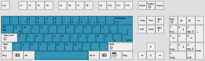 Dieser Bereich dient der Eingabe von Buchstaben und Zahlen, oder auch zur Auslösung von Steuerfunktionen. Die Tasten können zusammen mit Modifiertasten gedrückt werden, um z.B. Großbuchstaben zu schreiben, Oder Steuerfunktionen auszulösen.