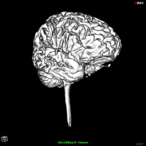 Und auch von menschliche Experten eingezeichnete Grenzen variieren von Mal zu Mal und von Individuum zu Individuum, so dass keine verläßliche Volumenbestimmung des Kleinhirns möglich ist. Es ist wichtig, ein Verfahren zu finden, mit dem in jedem MRT-Datensatz auf reproduzierbare Weise eine Grenzfläche zwischen Kleinhirn und Hirnstamm konstruiert werden kann. Das an der Universität Düsseldorf entwickelte Verfahren leistet dies.